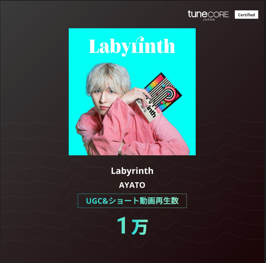 AYATOの『Labyrinth』が TuneCore JAPAN公式でUGC&ショート動画再生数1万回を達成しました✨